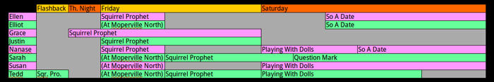 Story lines may take place over multiple in-universe days and overlap as the following graphic illustrates: